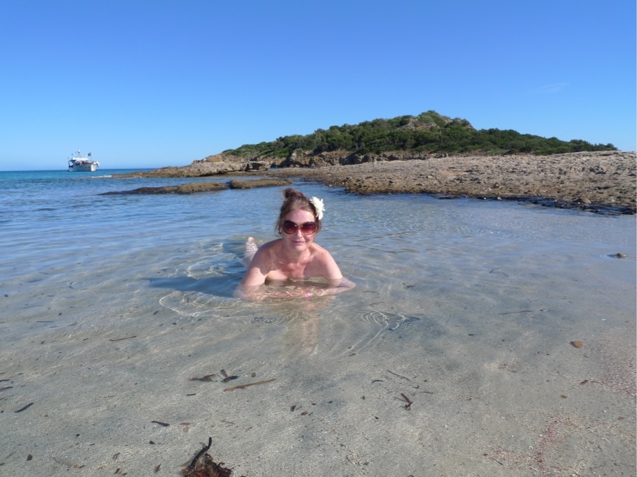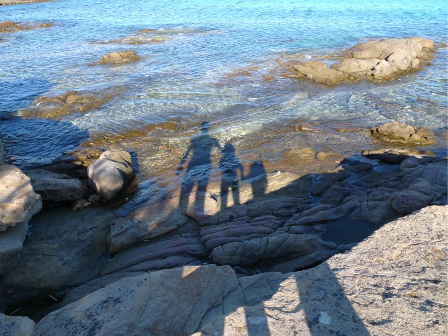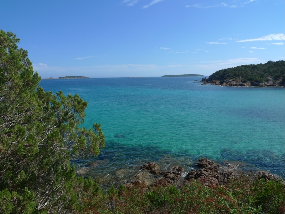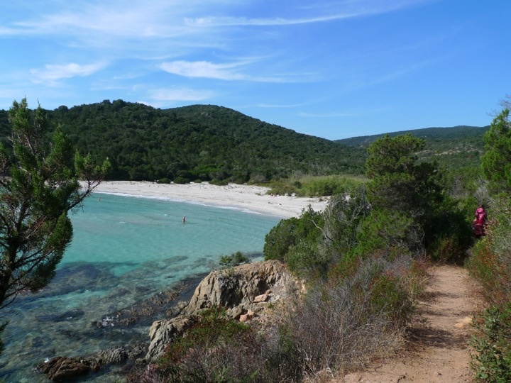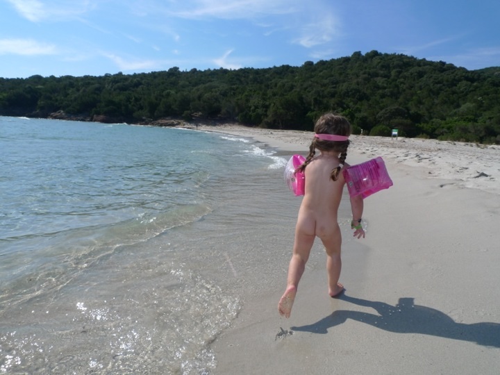 Wir haben uns inzwischen an das textilfreie Baden gewöhnt, es ist herrlich. Im Familienrat wird täglich entschieden, ob wir im beheizten Pool baden sollen, mit dem Auto zum Palombaggia-Strand fahren sollen (ca. 10 Minuten) oder ob wir die einstündige Küstenwanderung zum Tahiti-Strand machen sollen oder nur 30 Minuten zu einer ersten kleinen Bucht mit vorgelagerter Insel.