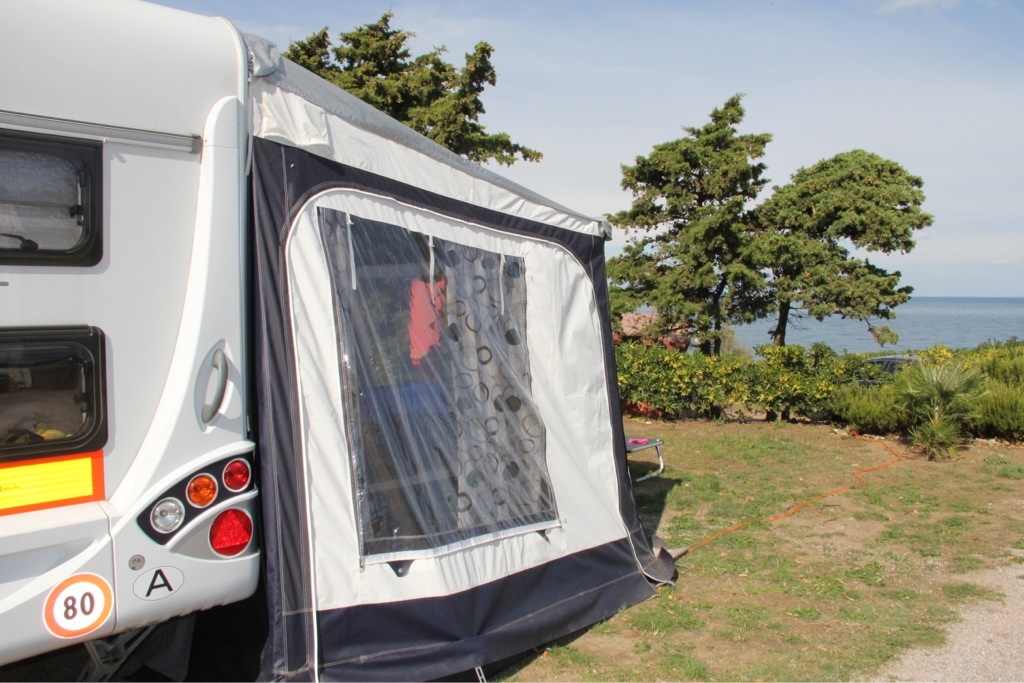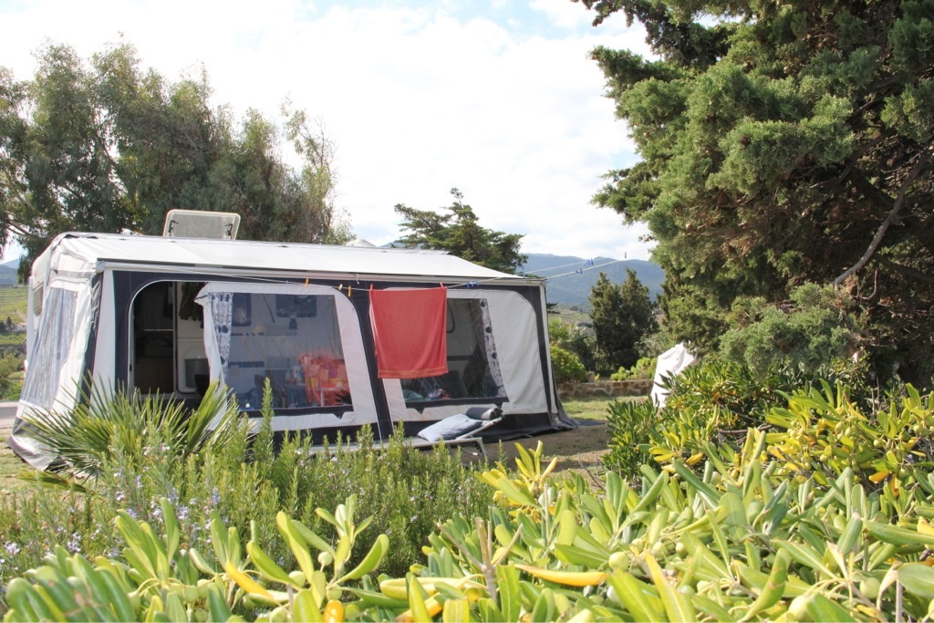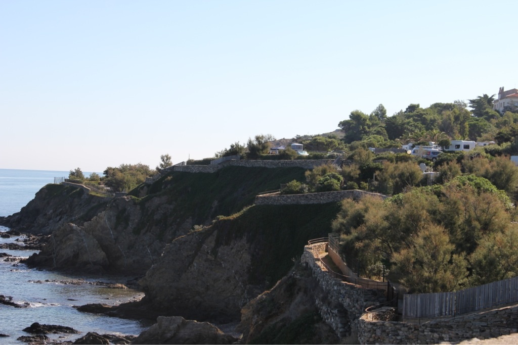 Wir fuhren daher auf der Autoroute du Soleil weiter Richtung Sonne, genau genommen bis nach Perpignan, der letzten französischen Grossstadt vor der spanischen Grenze. Von Perpignan ging es nochmals gut 30 km bis nach Argelès-sur-Mer, unserem derzeitigen Standort. Hier gibt es nämlich einen ganz tollen 5-Sterne-Campingplatz „Les Criques de Porteils“ auf den Klippen mit herrlichem Blick auf’s Meer. Unser Cool-Camping Reiseführer hat diesen Platz als einen der schönsten in Frankreich angepriesen und es stimmt – der Blick vom Wohnwagen direkt auf das Meer ist wirklich überwältigend.