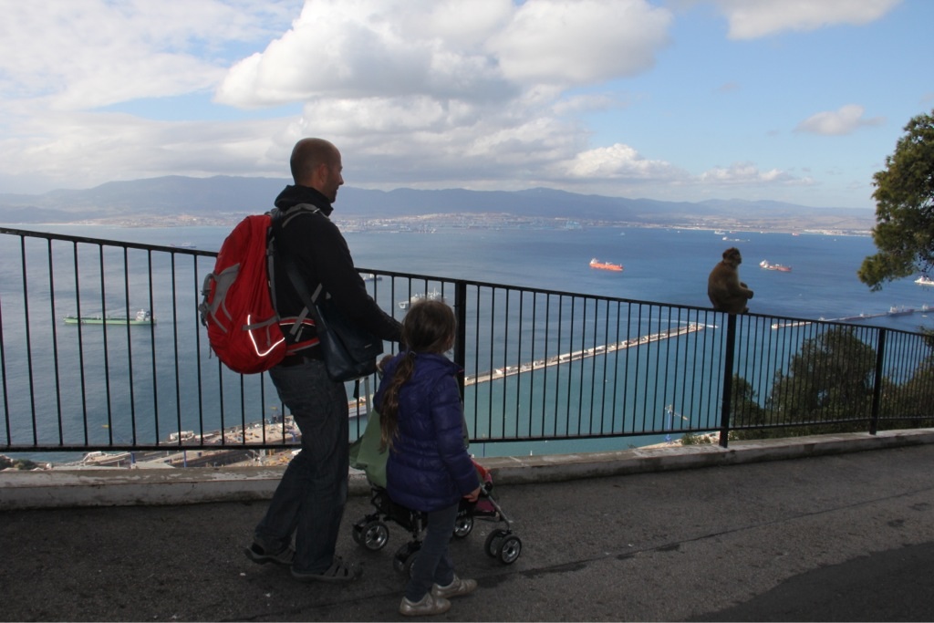 Eine weitere Tagestour führte uns nach England – genau genommen in das britische Überseegebiet Gibraltar. Hier kommt man sich wirklich wie in England vor – Pubs, Fish & Chips, rote Telefonzellen, Bobbies, Teatime – nenne mir ein englisches Klischee und du bekommst es in Gibraltar bestätigt – sogar das Wetter war an diesem Tag unangenehm kalt, doch dies dürfte wohl eher die Ausnahme sein. Gibraltar ist im Wesentlichen ein ca. 5 km langer, gut 400 m hoher Berg, strategisch günstig gelegen und daher von allen Seiten sehr begehrt. Seit gut 300 Jahren britisch, geht man heute aus zwei Gründen nach Gibraltar: erstens um zollfrei zu shoppen, zweitens um auf dem „the Rock“ genannten Berg die Kolonie wild lebender Berberaffen zu sehen, übrigens die einzigen wild lebenden Affen Europas, von denen nicht klar ist, ob sie von Menschen hierhin gebracht wurden oder schon immer auf dem Felsen heimisch waren.