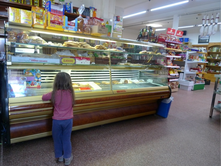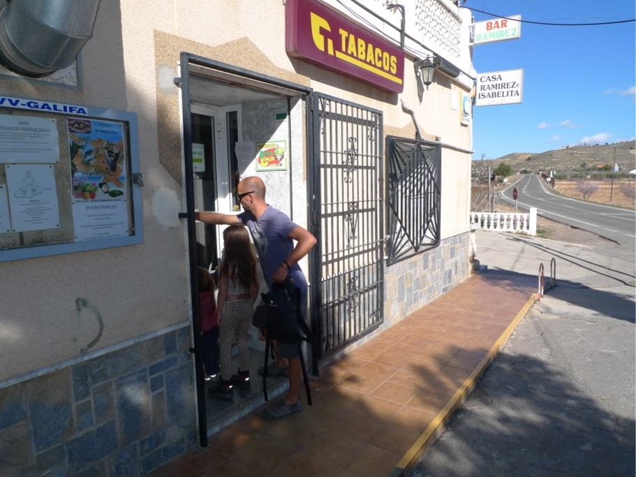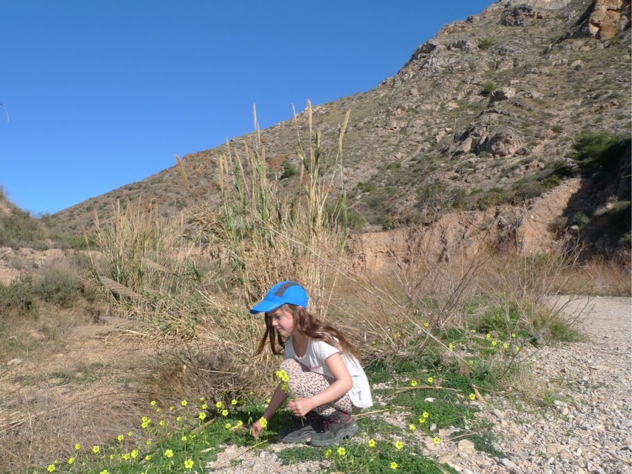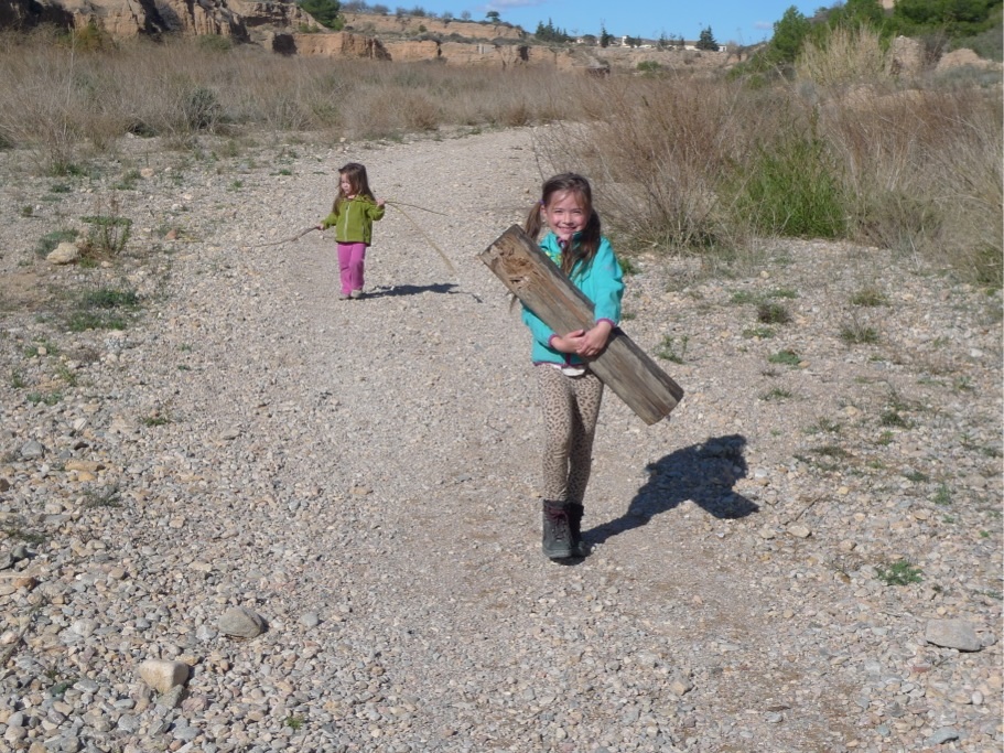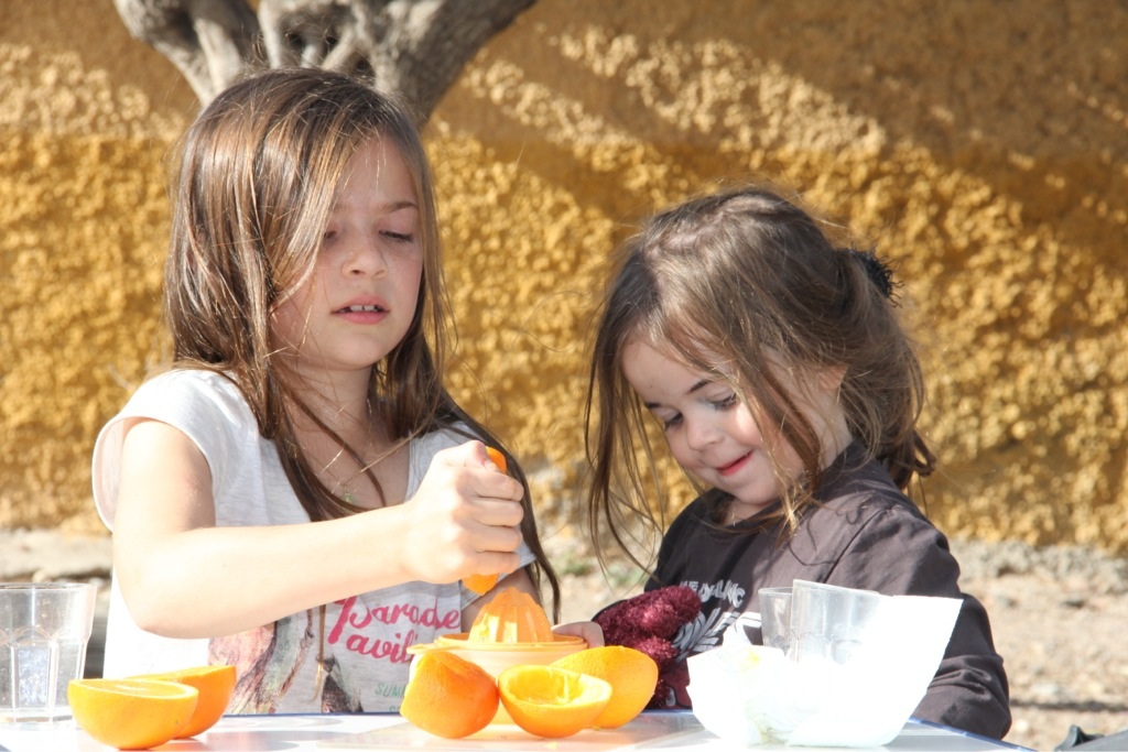 Nach der Schule machen wir oft eine Wanderung, meistens wandern wir durch die Rambla (ausgetrocknetes Flussbett) zu Ramirez e Isabelita, um eine „Ration Jamon y queso“ zu essen oder einen Tostada zu essen. Dazu gibt es Tinto Verano oder einen Asiatico (Kaffe mit Schuss). Nein, wir trinken nicht nur Alkohol (die Kinder sowieso nicht…), auch wenn er hier besonders gut schmeckt. Oft pressen wir z.B. auch frischen Orangensaft. Die erntefrischen Orangen werden hier von Bauern in 5kg-Säcken verkauft, oft reicht uns so ein Sack nur für wenige Tage.