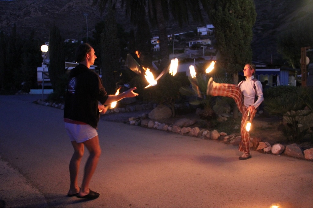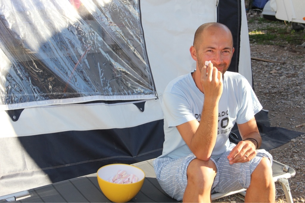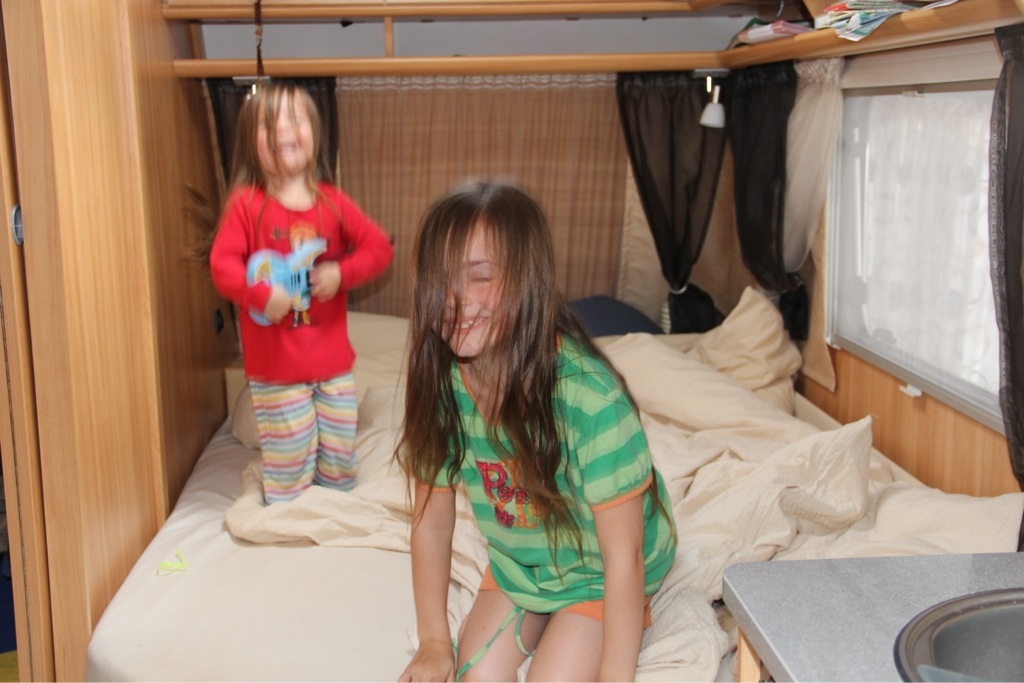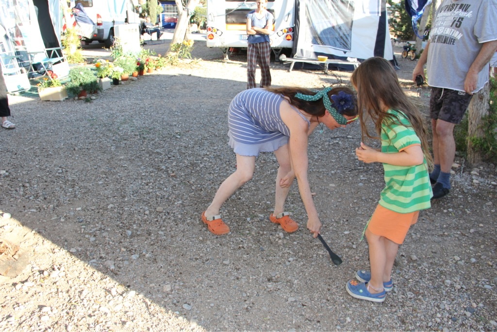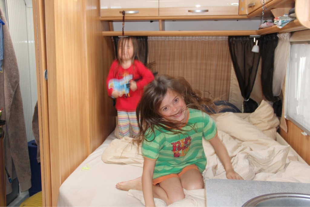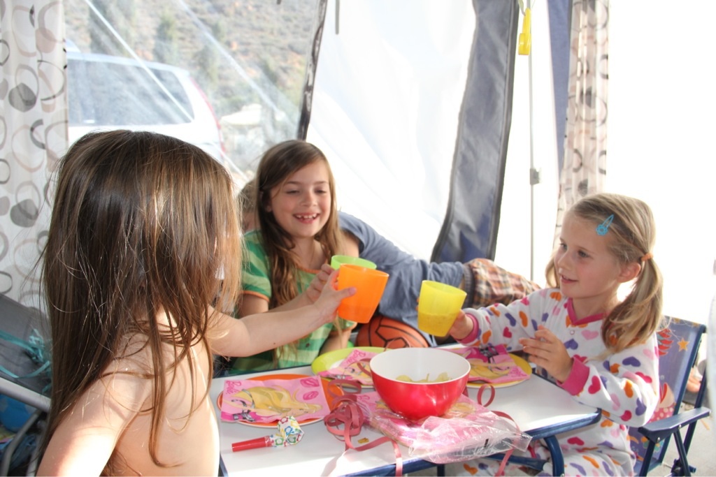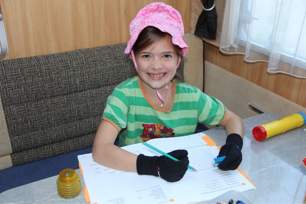 Gewisse Fixpunkte geben den Tagen eine Struktur, die aber genügend Platz für Spontanität lässt. Zunächst wäre da das gemeinsame Frühstück – für Penelope oft schon das zweite nach einer Nudelsuppe um halb sieben, gefolgt von Esmeralda’s Wohnwagenschule. Während die große Tochter fleißig mit Mama Juanita lernt, ist die kleine mit Papa Esteban und Like a Bike irgendwo auf dem Campingplatz unterwegs, entweder um Freunde zu besuchen oder um auf dem Spielplatz zu schaukeln.