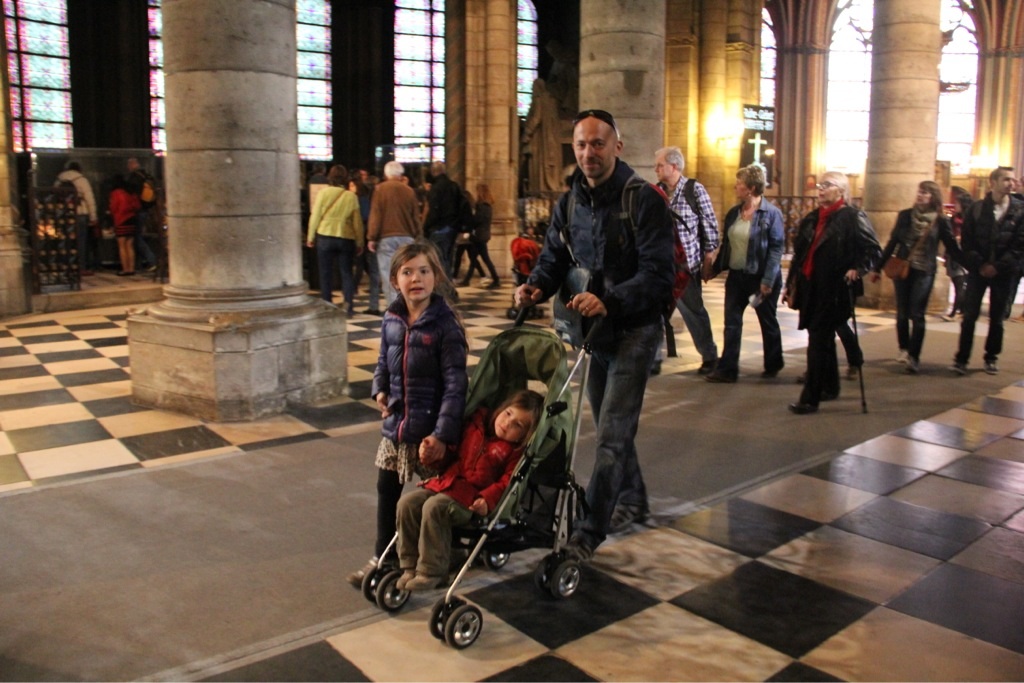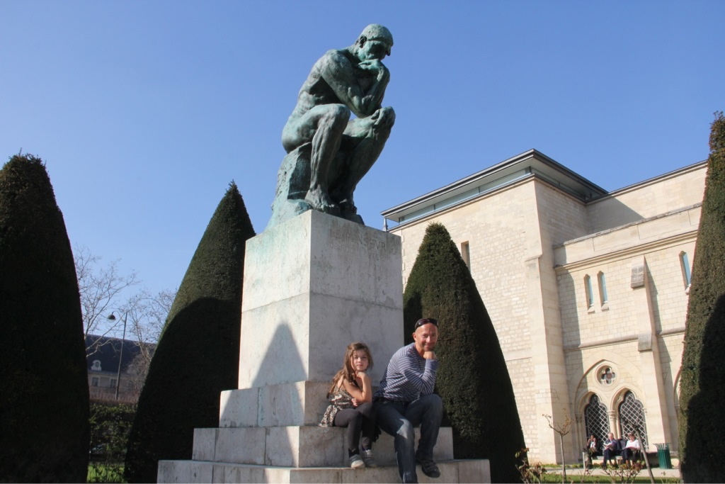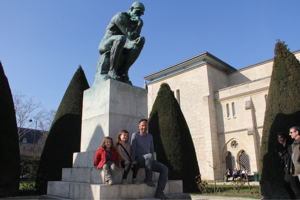 Am Samstag steht eine Seine-Fahrt auf dem Programm, welche allen Familienmitgliedern gefällt. Auf der Île de la Cité steigen wir aus, um die Kathedrale Notre-Dame zu besichtigen. Für die Kinder ist besonders die Geschichte vom Glöckner und der schönen Esmeralda (Namensgleichheit!) interessant. Im Inneren zelebriert der Kardinal gerade eine Messe und so ist es ein sehr intensiver Eindruck, den die wunderschöne Kirche bei uns allen hinterlässt. Wir steigen wieder in ein Boot, fahren einmal bis zum Eiffelturm und wieder zurück, um auf den Seine-Stufen vor dem Musée d’Orsay ein Picknick zu machen. Dann geht es zu Fuß weiter zum Musée Rodin, für Familie Ausgeflogen das schönste Museum der Stadt mit einem wunderschönen Garten und tollen Werken des berühmten Bildhauers, wie „Der Denker“ oder „Der Kuss“.