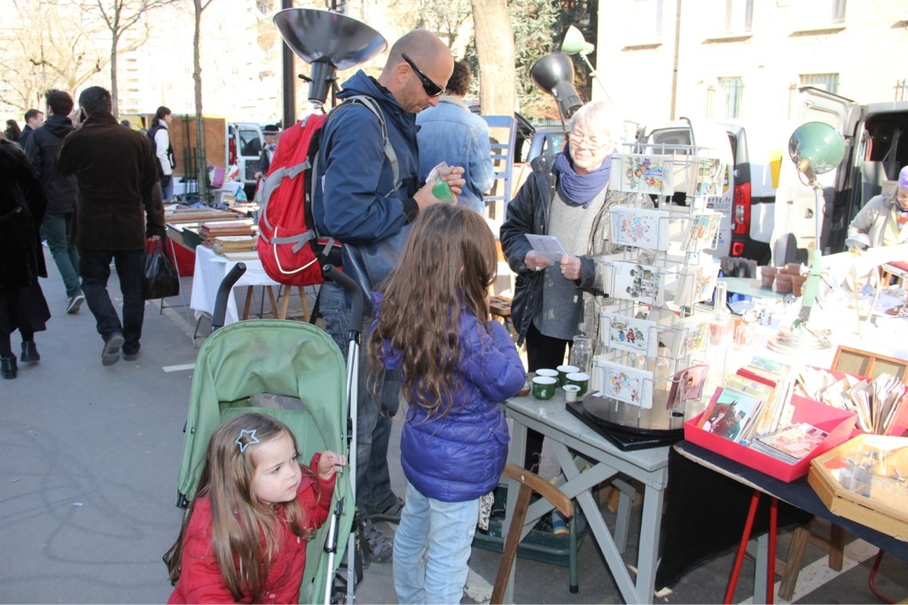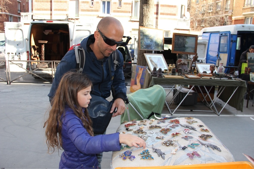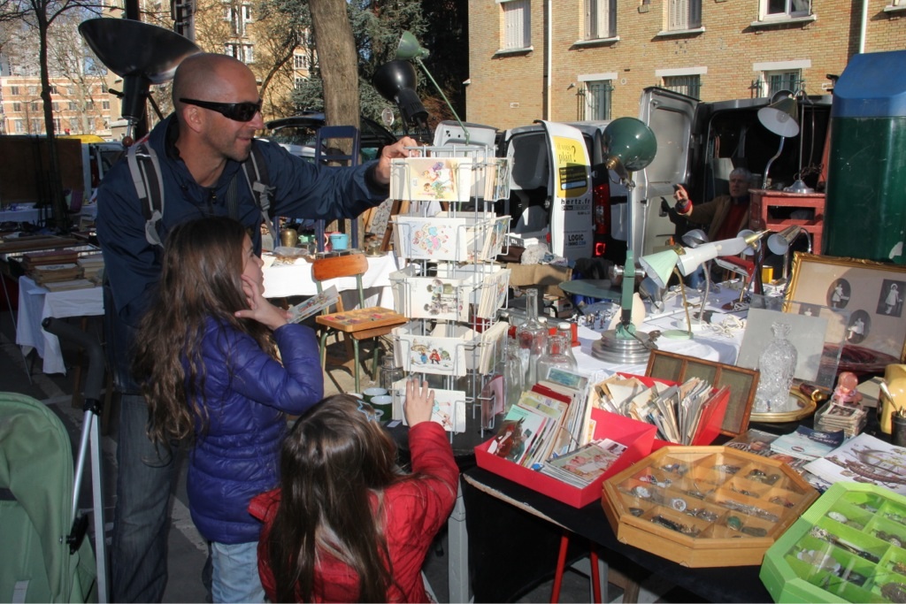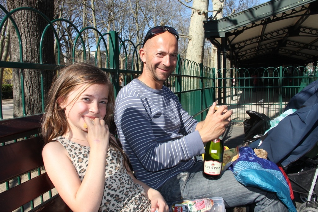 Am nächsten Morgen fahren wir mit der Metro nach Porte de Vanves zum Marché aux Puces (Flohmarkt). Dieser grosse Flohmarkt hat eine sehr angenehme Atmosphäre und wir können diverse Schnäppchen ergattern. Esteban’s Mutter war schon etliche Male extra deswegen in Paris, und sie muss es ja wissen als begeisterte Sammlerin. Zum Abschluss unserer Parisreise dürfen sich die Kinder noch etwas wünschen und sie entscheiden sich für einen neuerlichen Besuch des Jardin du Luxembourg mit Spielplatz und Picknick. Ausgestattet mit Baguettes, Käse, Salami, Pain au chocolat, Crémant, Cola, Chips und Mandarinen genießen wir so wie viele Pariser die frühlingshaften Temperaturen im schönen Park. Das Glas Sekt in der Sonne zu schlürfen und dabei den Kindern beim Spielen zuzusehen ist Esteban’s schönster Eindruck von dieser Woche. Morgen geht’s weiter nach Freiburg im Breisgau, unserer letzten Station auf dem Weg nach Hause.