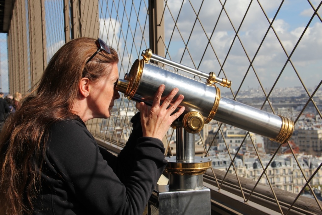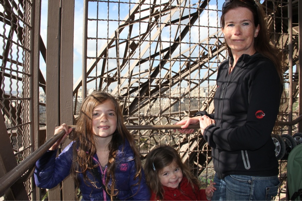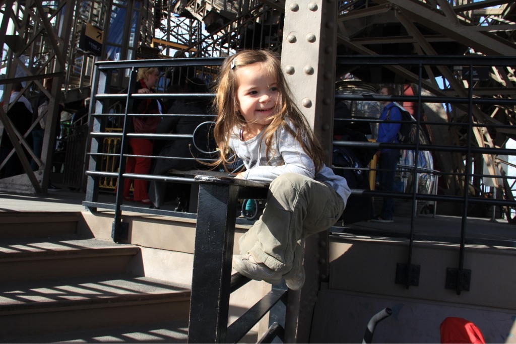 Am ersten Tag steht gleich ein absoluter Höhepunkt auf dem Programm – die Ersteigung des Eiffelturms. Eigentlich wollen wir ja mit dem Aufzug fahren, aber die Vorreservierungen sind für die kommenden 10 Tage ausgebucht und die Schlange vor den Kassenhäuschen für Gäste ohne Vorreservierung ist bestimmt 100 Meter lang. So entscheiden wir uns also für das Treppensteigen. Und es ist eine gute Entscheidung, die 720 Stufen bis zur 2. Terrasse zu Fuß zu gehen, denn so wird einem erst die wahre Meisterleistung von Gustave Eiffel bewusst. Selbst Penelope ist voll motiviert den Eiffelturm selbst zu erklimmen. Im kürzlich gelernten Wechselschritt geht es Stufe um Stufe hinauf. Für Juanita ist die Besteigung und die sensationelle Aussicht von oben der Höhepunkt der Parisreise. Nach dieser „Klettertour“ entscheiden wir uns als Draufgabe noch für eine Rundfahrt in einem offenen Doppeldeckerbus, um einen guten Überblick über die Stadt und die Sehenswürdigkeiten zu erhalten. Wir haben das schon in Rom so gehandhabt und für gut befunden.